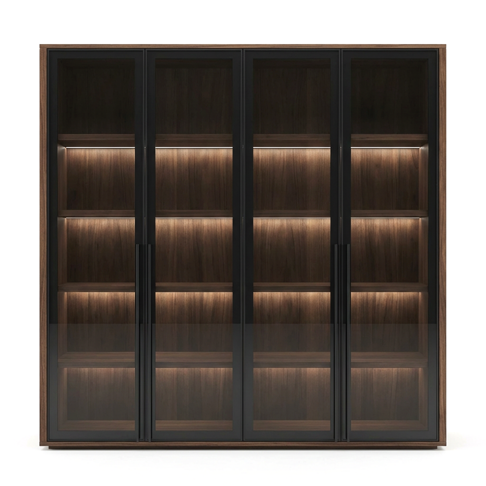 - Four glass doors for a refined, modern display